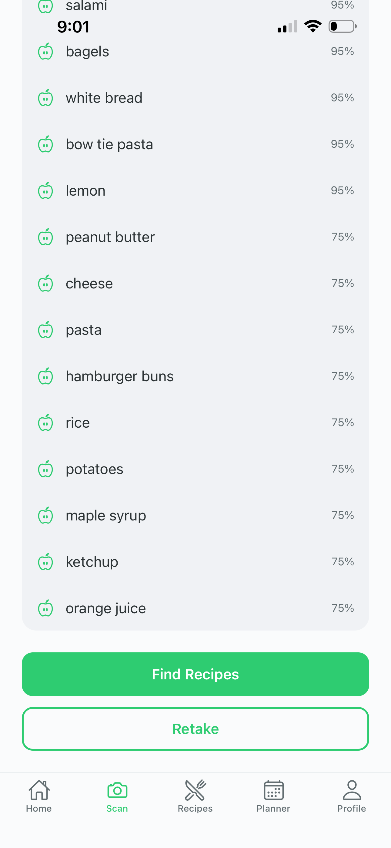 Our AI is powered by Claude Vision and can identify most common grocery items with high accuracy. For best results, ensure good lighting and take photos from multiple angles. You can always edit the ingredient list after scanning.